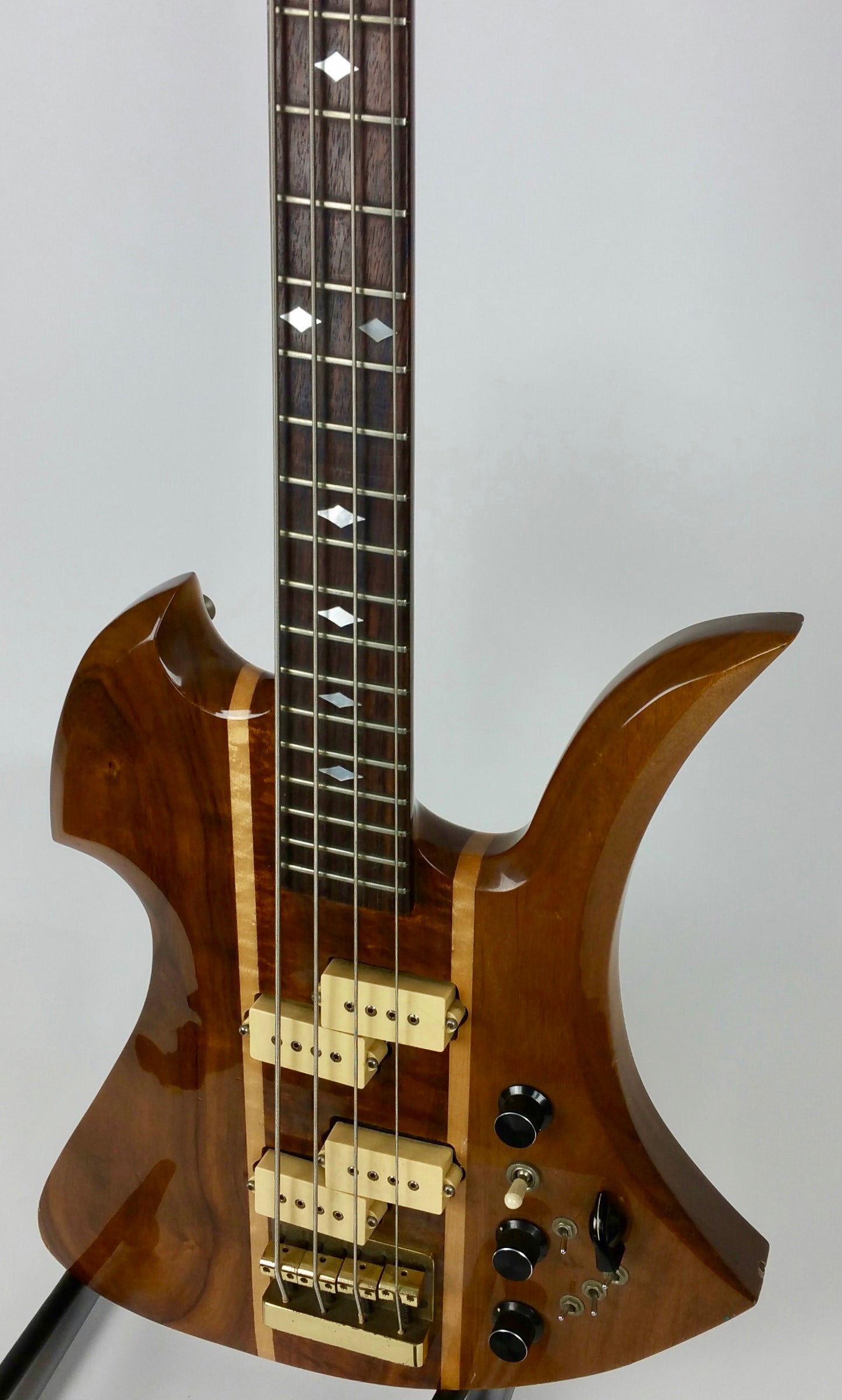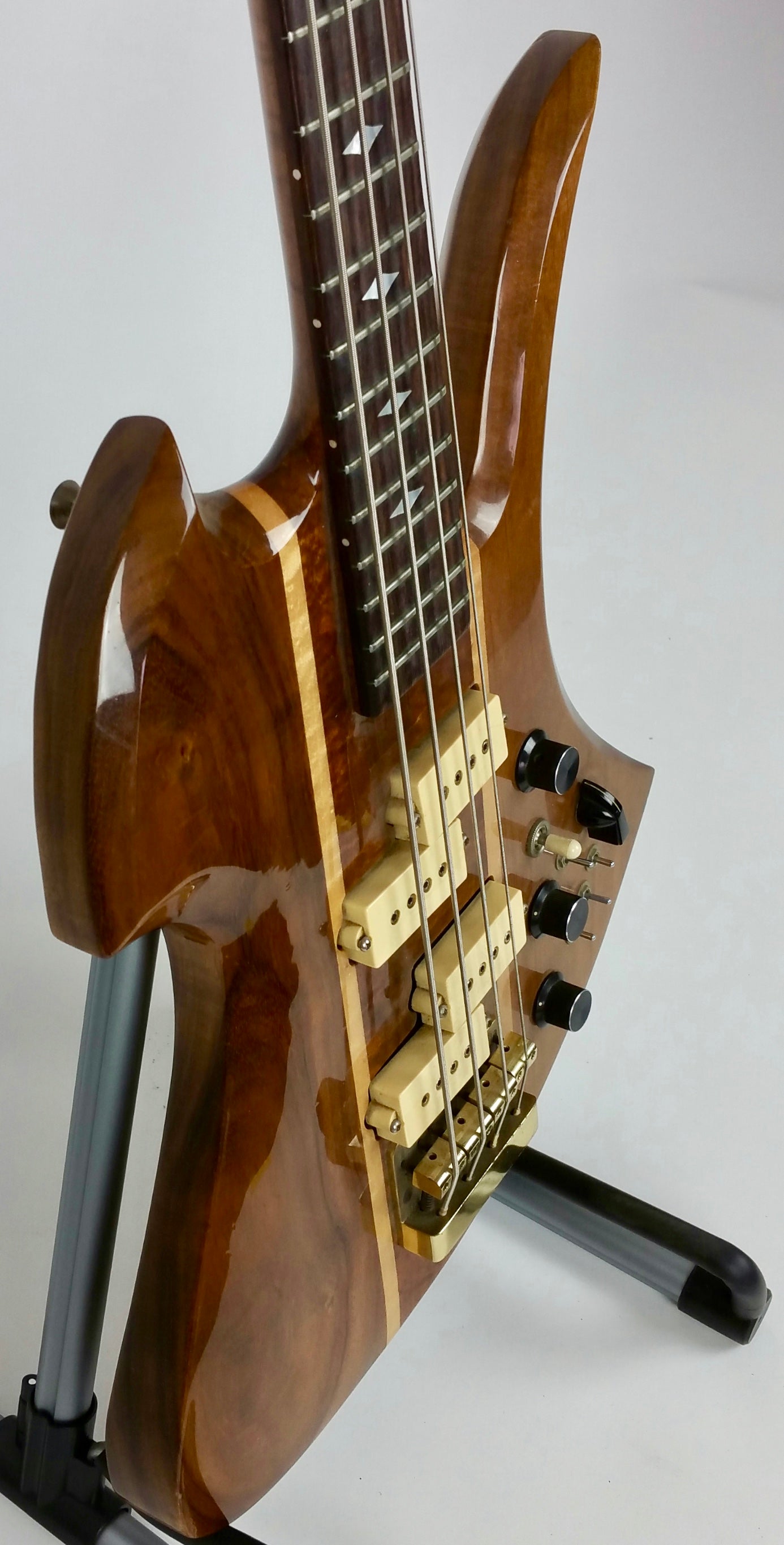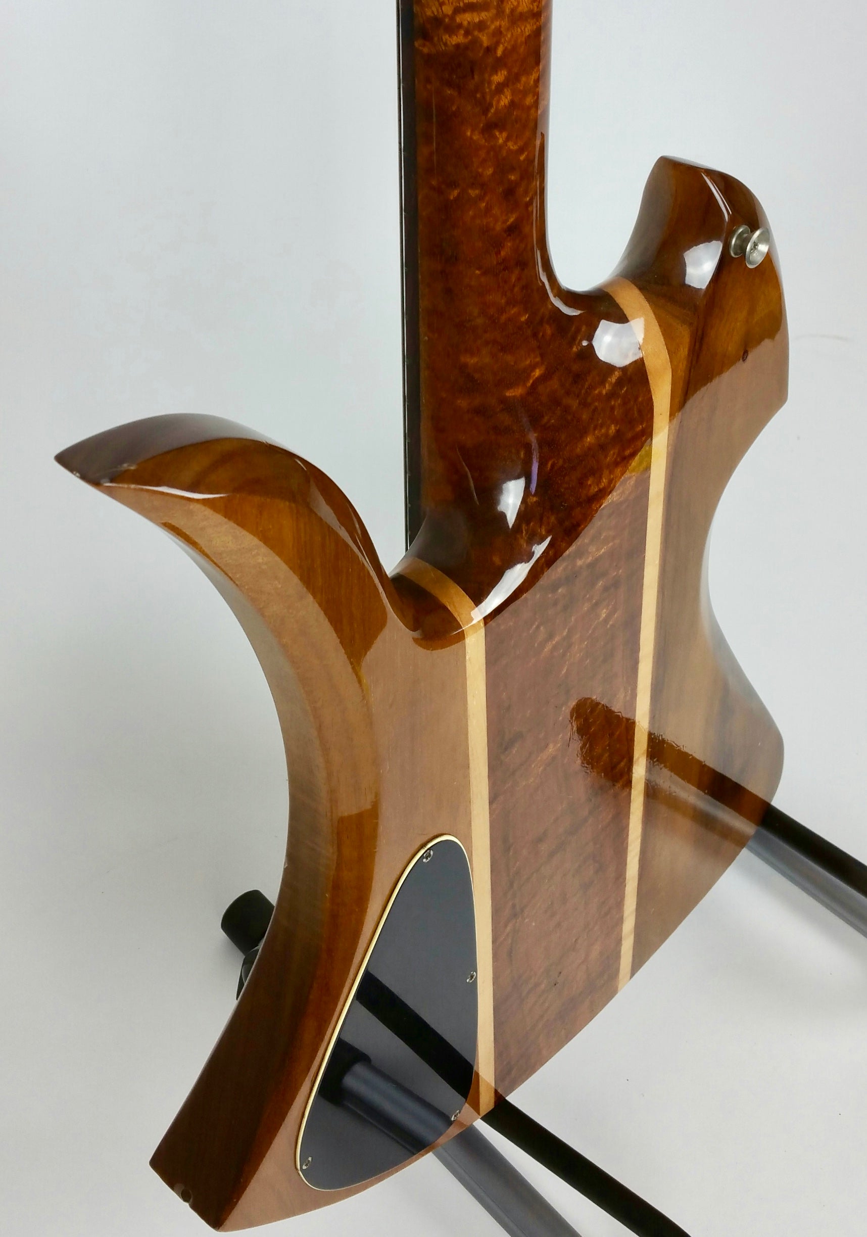 B.C. Rich Mockingbird bass (1980), koa w/maple stringers, headstock repair