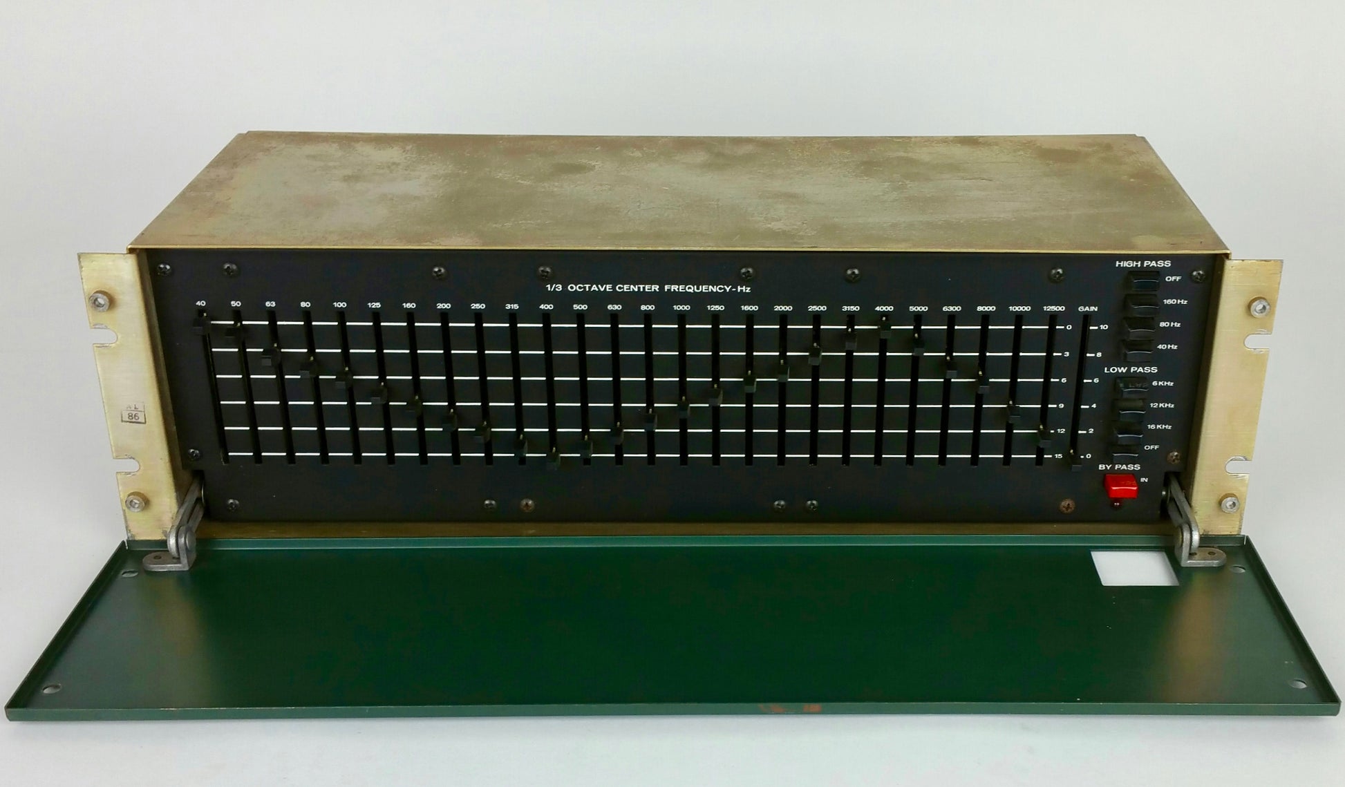 1970's Altec single-channel 1/3rd octave active graphic equalizer in excellent condition. Frequencies are cut only with a +10 db gain stage boost. There are also three high pass and three low pass filters. The green front plate protects your settings once it is screwed into your rack.