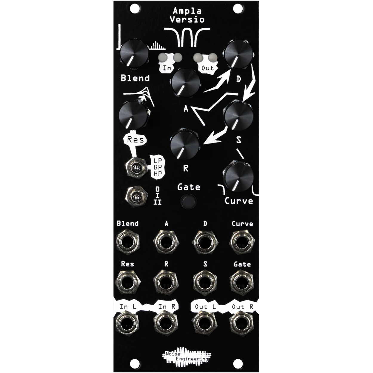 The Ampla Versio firmware offers a number of different dynamic and tone options: the Blend control fades between a pure VCA and a VCA/filter combo behaving similarly to a traditional lowpass gate, but with lowpass, bandpass, and highpass filter settings. The ADSR envelope is fully voltage controllable and also features a dynamic curve control, creating an expressive envelope you can shape to your liking.