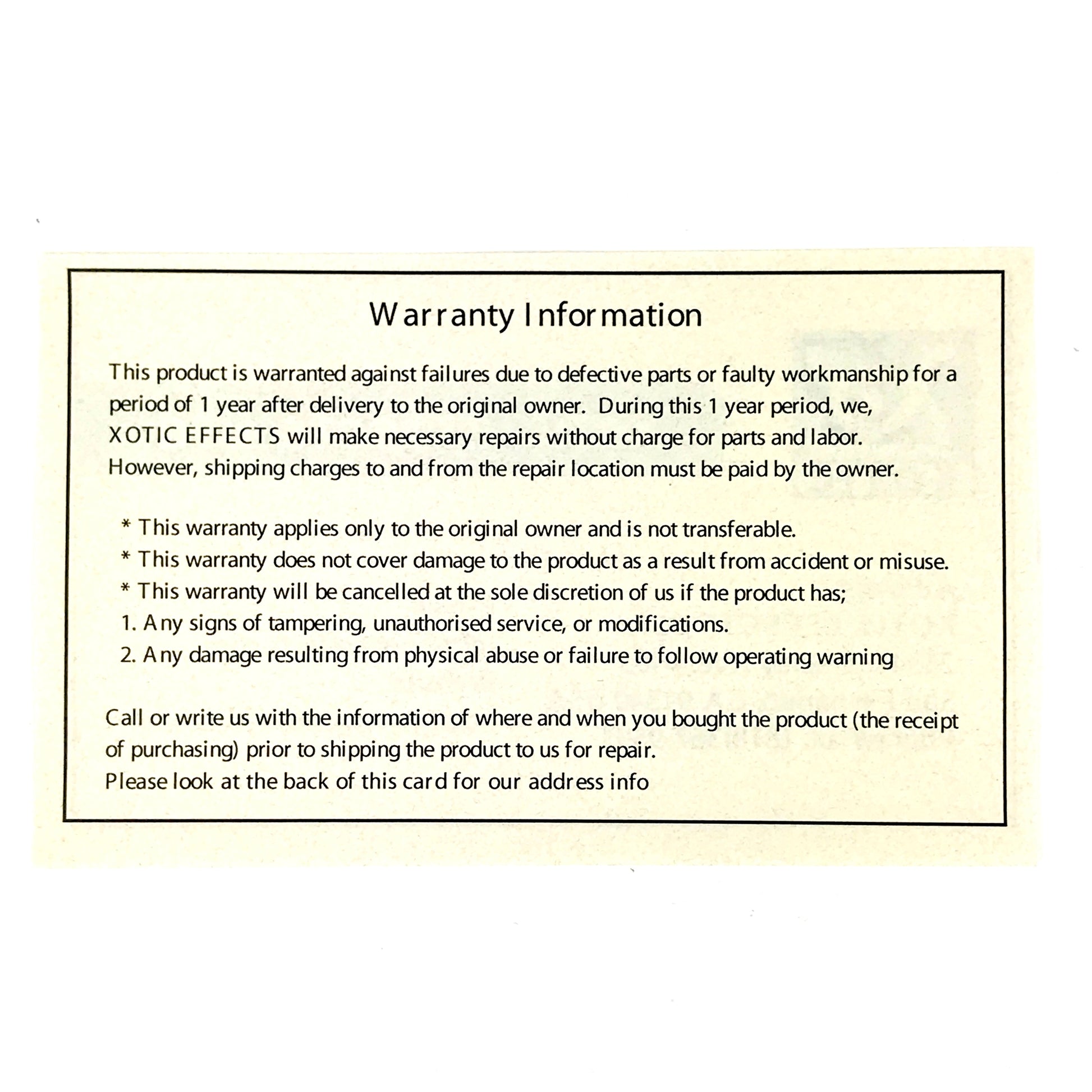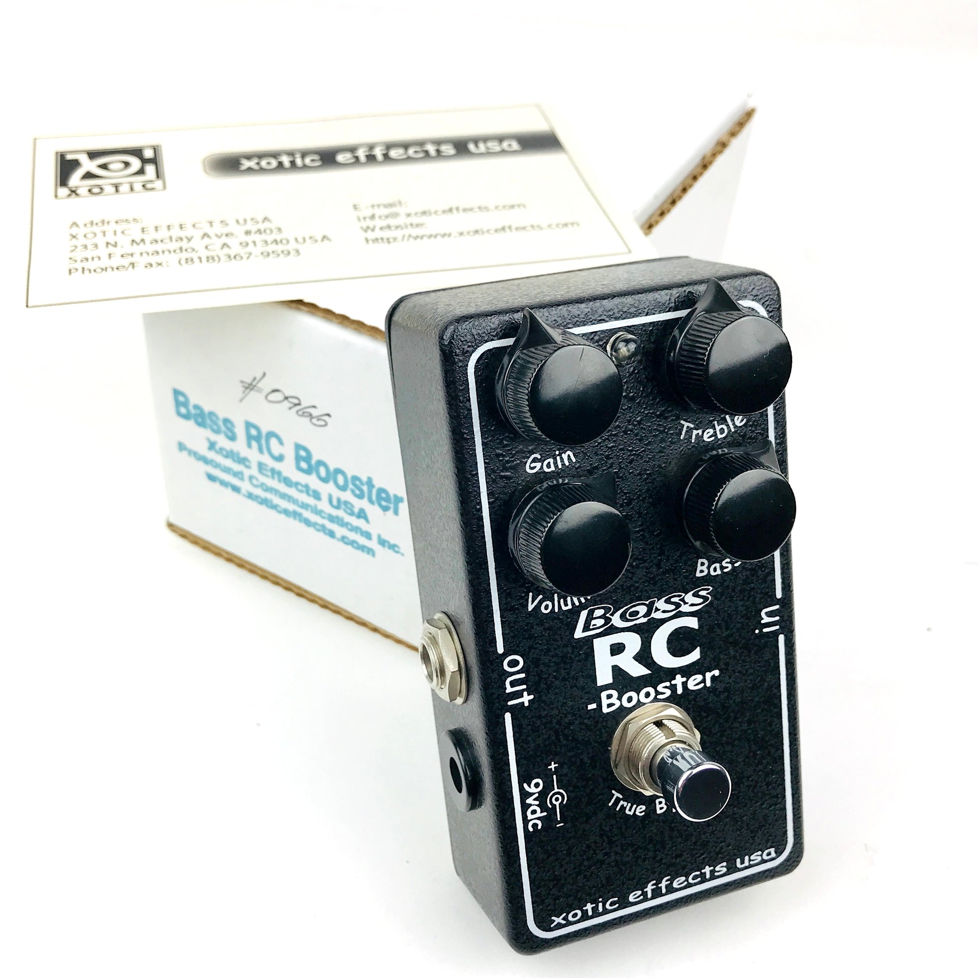N.O.S. Xotic Bass RC Booster with a 2 band EQ, 15dB boost / cut function and a very smooth clean boost, this pedal meets a wide range of tonal applications. With signal loss and EQ limitations common to vintage basses. The Bass RC Booster serves as the perfect remedy. It is designed to enhance your bass guitar tone without masking it. True bypass for eliminating any signal interference when it is switched out. Can be used with AC adaptor (optional) or 9V Battery.