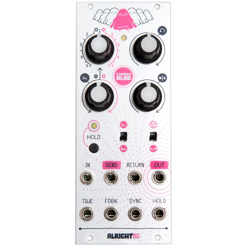 Chronoblob also uniquely features a HOLD switch and gate input to freeze the audio buffer. Punch that shit and modulate TIME for mad stutter and glitch!