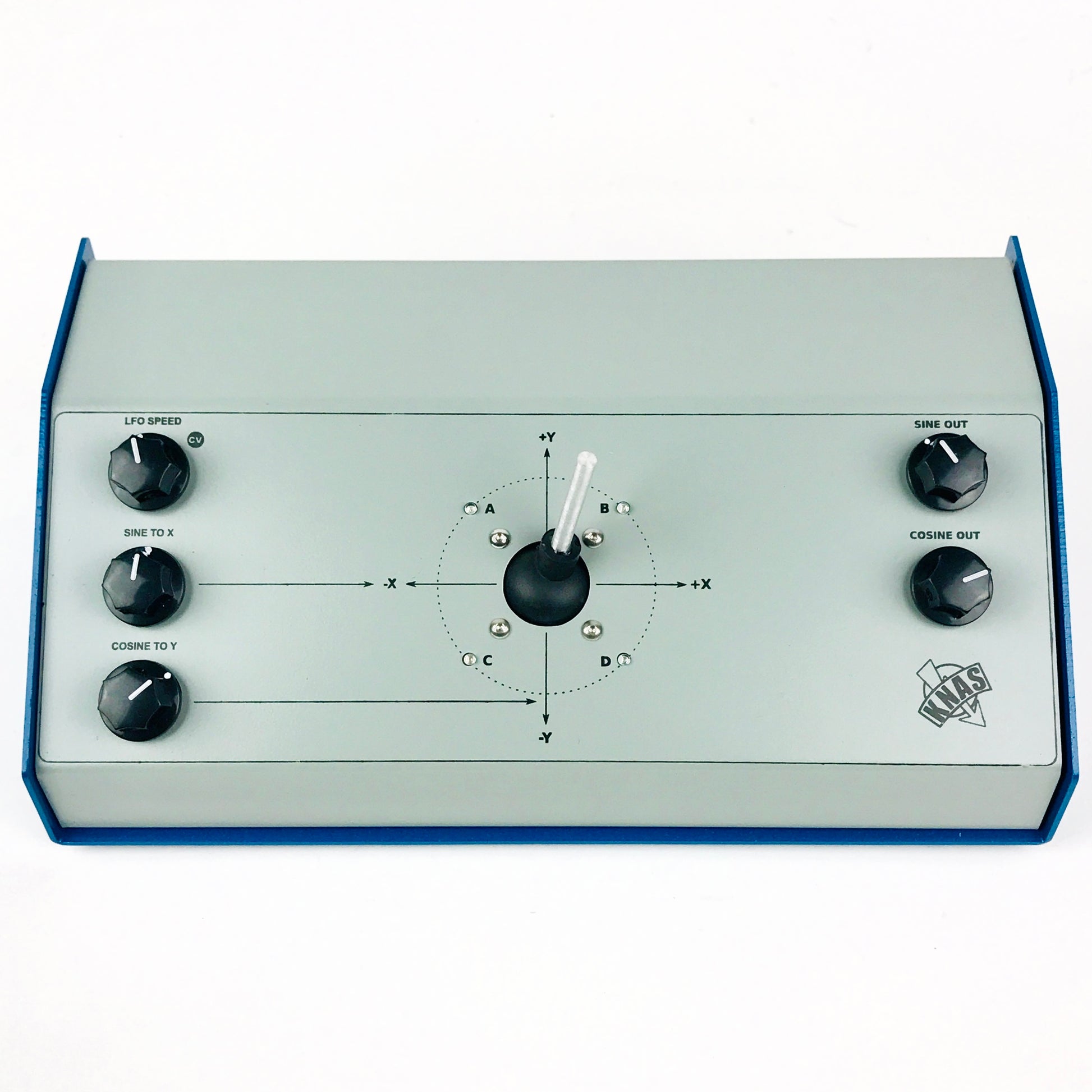 In short, the Ekdahl Quad Massager can be used to "move" a signal on a 2-dimensional surface, giving the effect of quadrophonic panning. In reality, the joystick position only sets the volume of the four outputs. At center position all outputs are at their maximum output volume, the further the joystick moves from the center, the less the amplitude of the opposed outputs of the travel.