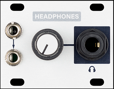 This is a simple 1U module designed to allow the monitoring of a system using headphones. The headphone jack doubles as a TRS stereo line level output. Simply connect the signal that you want to monitor to the 1/8″ jacks, plug in your headphones, and adjust the volume as desired.