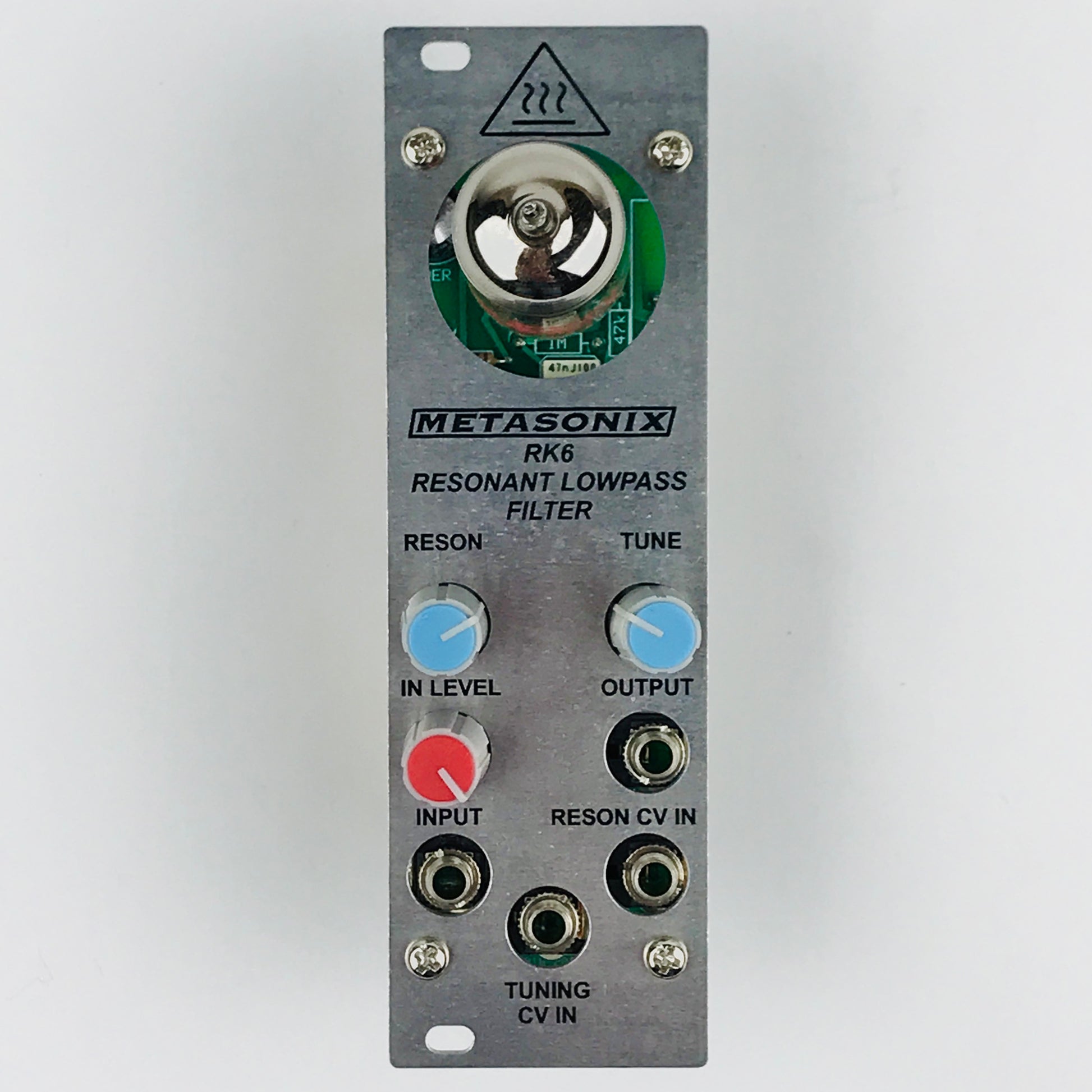 The RK-6 is a TOTALLY UNIQUE product, one that has never existed before. It is a Sallen-Key lowpass filter with a feedback loop, to allow it to resonate. There are no integrated circuits or transistors in the signal path. It is a PURE TUBE design, the sort of design that might have been invented in the 1950s if anyone had dared to create a turnable lowpass filter for musical uses before Moog and Buchla. It even uses a coupling transformer to provide the proper phase of the feedback signal -- pretty a "classic good old days" approach, and one rarely seen in the 21st century. Two "vactrol" optocouplers tune the filter, and another coupler allows CV control go the filter's resonance.
