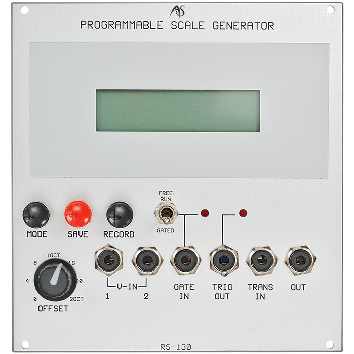 The RS-130 offers four preset scales and memory for one user-defined scale. It also comes with a range of 63 notes, plus a trigger output generator. There are gated and "free" modes for a wide range of applications.