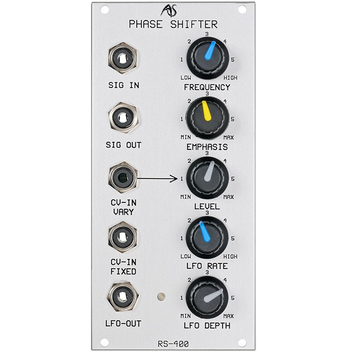 The RS-400 is the famous Equinoxe phase shifter designed by Oakley Sound for Analogue Systems. It is a 4-stage phaser with an integrated LFO and CV inputs to control the notch frequencies. It offers variable resonance to create a wide range of phase-shifting effects.