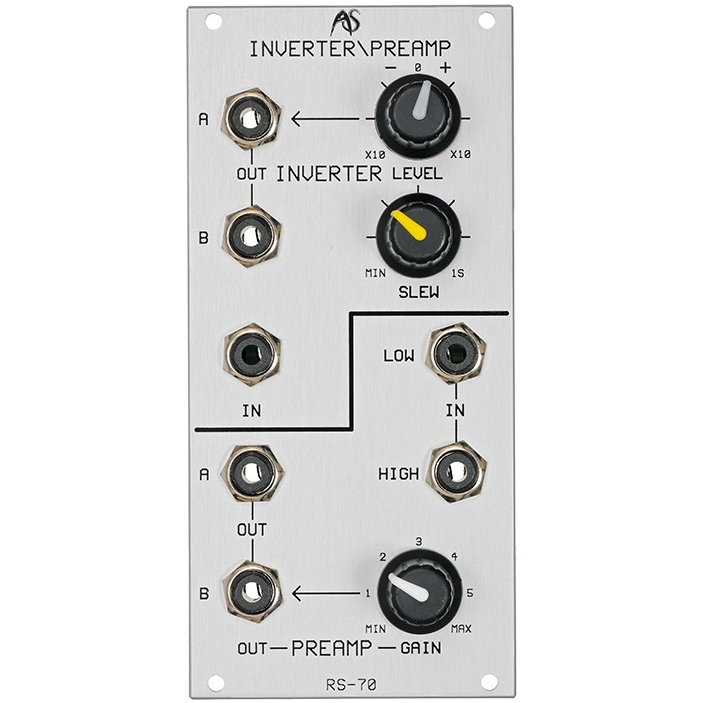 A pre-amp is the only module that, in normal use, amplifies signals within the Integrator. (Although VCAs are called "Voltage Controlled Amplifiers" they should, more accurately, be called "Voltage Controlled Attenuators".) A pre-amp is most often used to amplify weak external signals so that they can be correctly processed within the Integrator. The RS70 will accept virtually any such signal, and it can also be used to amplify signals generated within the Integrator itself.