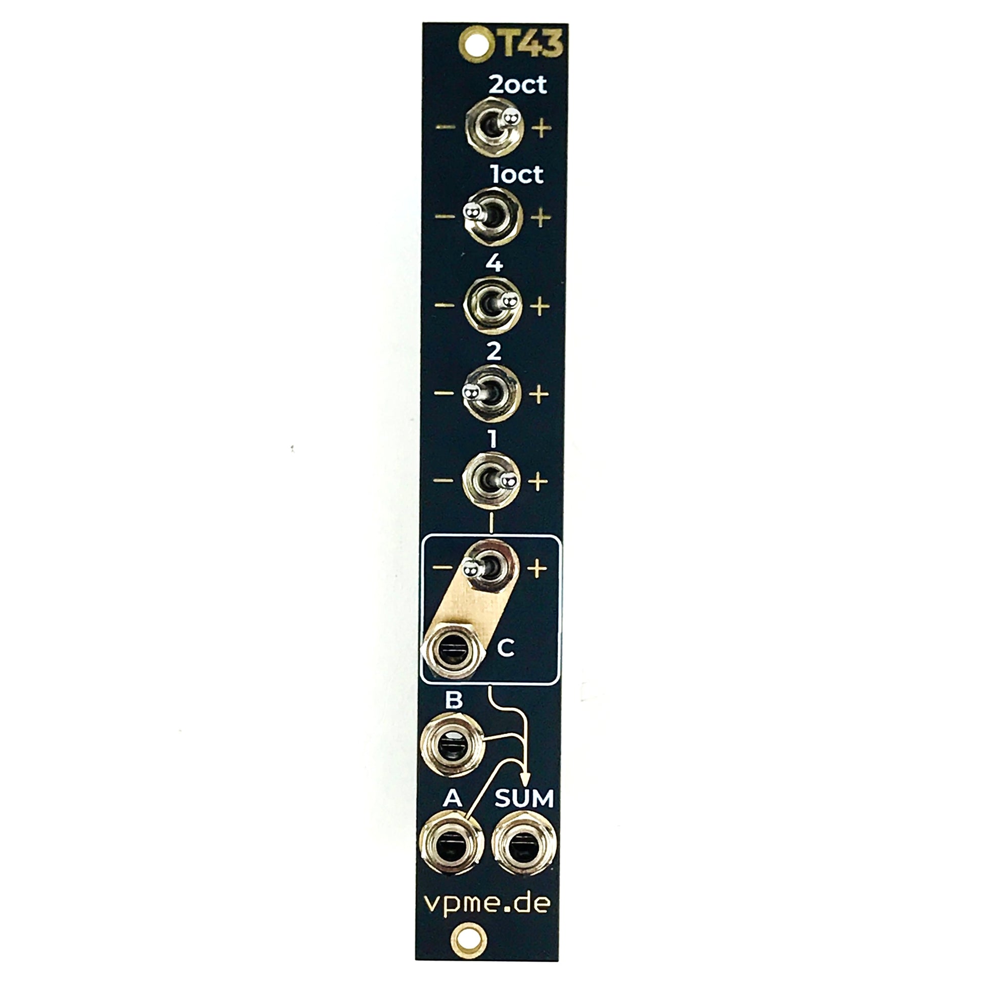 vpme.de's T43 is a precision adder and transposer that uses precision opamps and voltage references in order to give you perfect tuning across the whole transposition range.  This module is perfect for adding semitones and octaves to a Pitch CV with the flick of a switch.