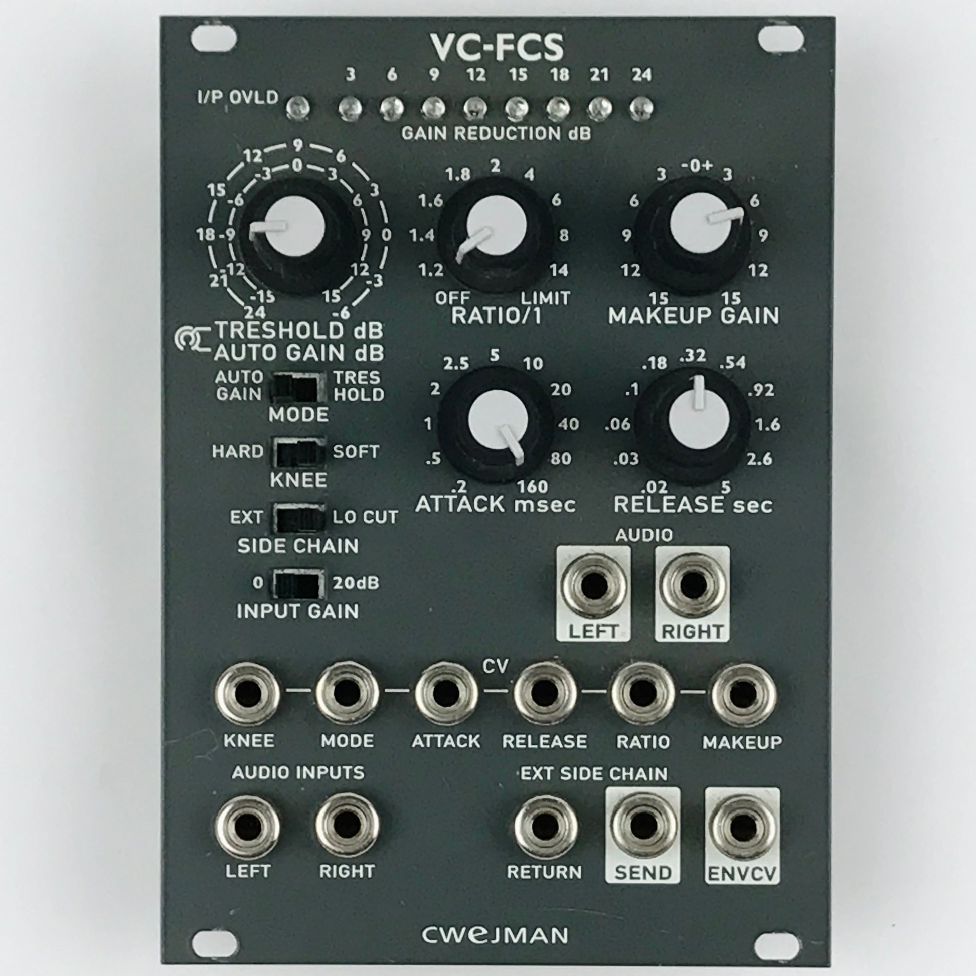 The VC-FC is a unique forward compressor in the sense that all compressor parameters can be voltage controlled from the external modulation sources by CV inputs. It gives a lot of possibilities for an instant change of compressors character by CV signals from analogue sequencers or other CV generating devices. The external devices, such as filters can be also inserted in to the Side Chain of the compressor for frequency dependend gain reduction.